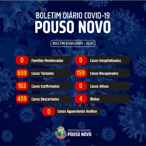 Boletim diário do Comitê de Enfrentamento ao Coronavírus, atualizado na tarde de hoje (26/07).