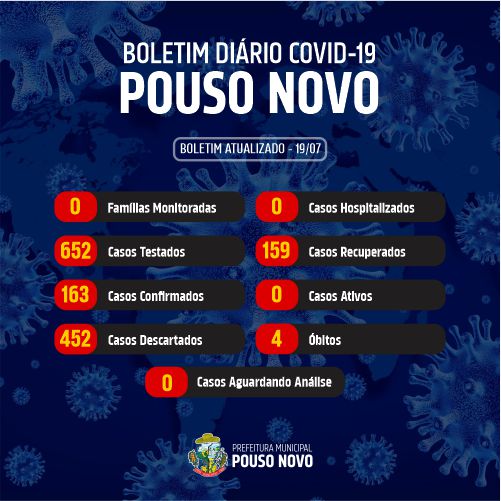 Boletim diário do Comitê de Enfrentamento ao Coronavírus, atualizado na tarde de hoje (19/07).