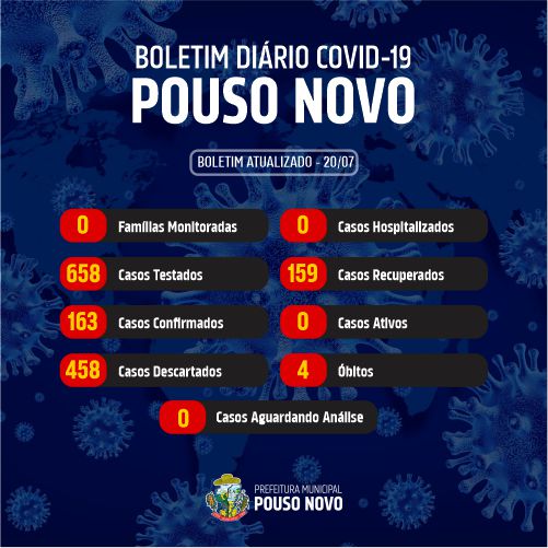 Boletim diário do Comitê de Enfrentamento ao Coronavírus, atualizado na tarde de hoje (20/07).