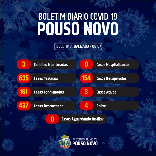 Boletim diário do Comitê de Enfrentamento ao Coronavírus, atualizado na tarde de hoje (08/07).